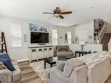 Tucked in a quiet corner, this 3-4 bedroom home in the Meridian community at Lincoln Crossing offers an open concept living area and kitchen, a bonus loft area upstairs, a spacious backyard, and access to the Lincoln Crossing Clubhouse included in the HOA! On the first floor, you'll find a half bath and a bonus room that could be used as a den, office, or 4th bedroom. Laundry is conveniently located on the second floor and ample storage is available throughout the home. Easy access to shopping, walking trails, and a short half mile to the clubhouse make this property a must see! Also included in the HOA is internet and front yard maintenance. Clubhouse offers amenities such as pool, gym, basketball court, soccer field coming soon, and more.