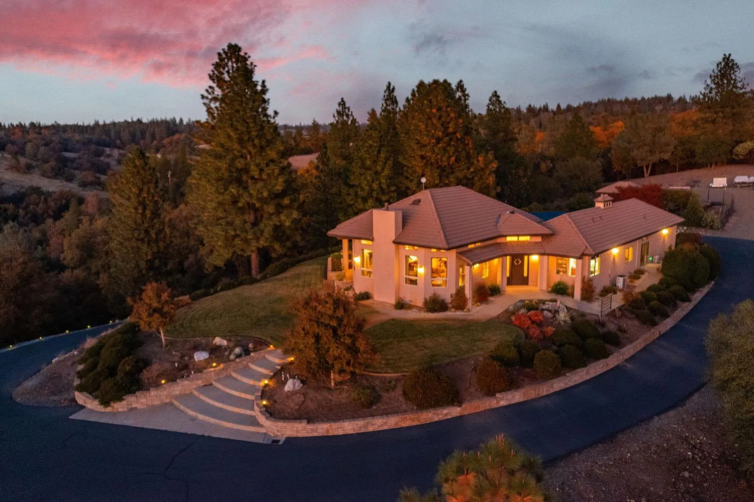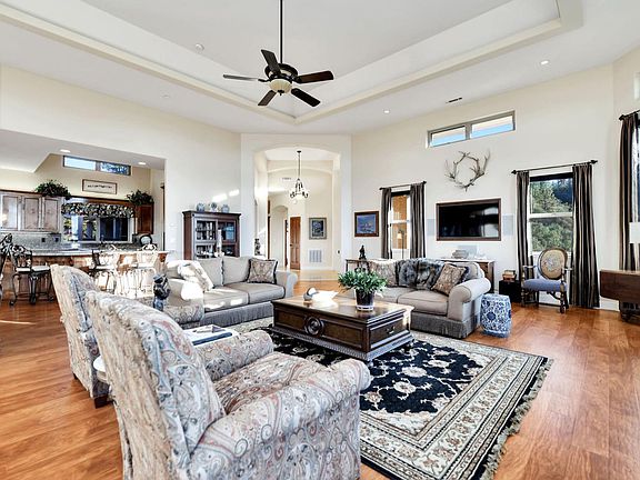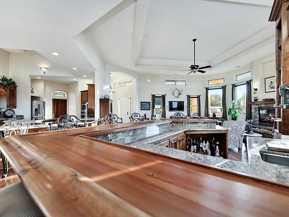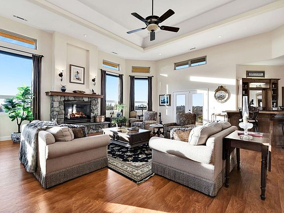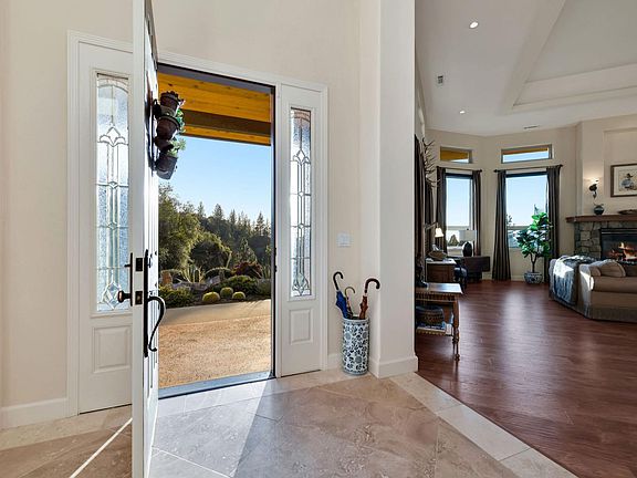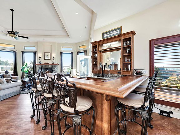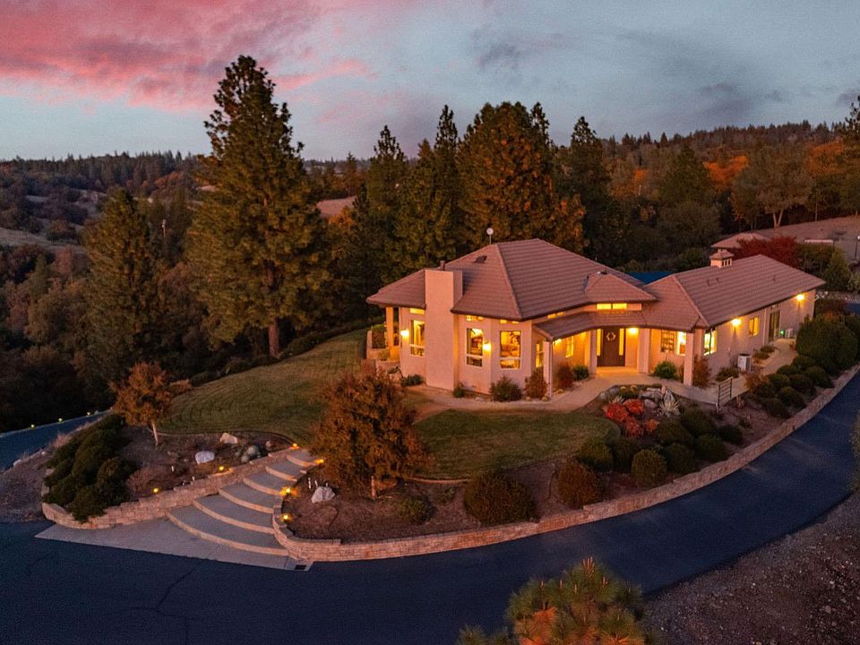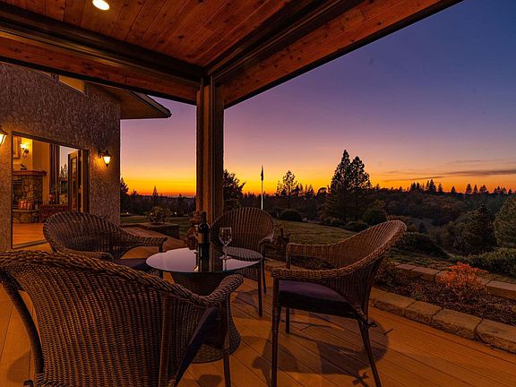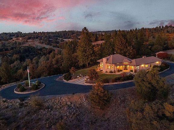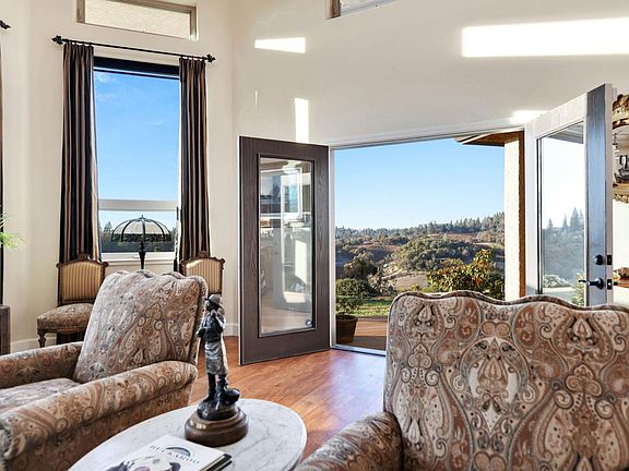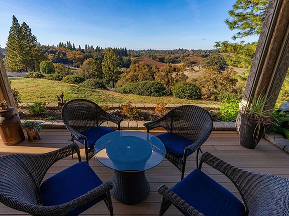 Stunning custom home set atop 23+ acres just minutes from downtown Sutter Creek! A gated entry leads to this peaceful setting overlooking vineyards, rolling hills & beyond. Built for entertaining, this home boasts an open concept and fabulous bar ready for the next party! Storage won't be an issue in the kitchen - there's an abundance of cabinets & counter space! The flawless living room soaks in views, a centerpiece fireplace & double doors leading onto the deck, as does the dining area. A master with fireplace, en-suite bath, and walk-in closet enjoys courtyard views. Two guest rooms are currently used as an office and guest suite are located across the courtyard from the master in addition to a guest bath. And a third guest room with fireplace and sink with entrance off the courtyard was newly added. An oversized 2-car garage, potting shed and fenced garden area are not to be missed. And a nostalgic old barn and flag pole complete this one-of-a-kind!
