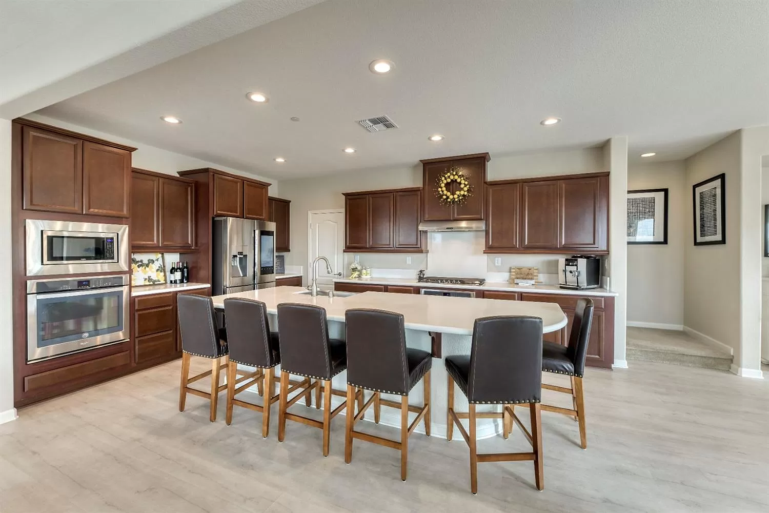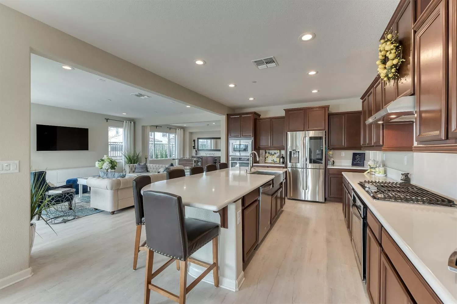 Beautiful CalAtlantic home in Whitney Ranch with 5 Bedroom & 5 Bath and tons of upgrades! Great location with cul-de-sac feel overlooking greenbelt and close to schools, just out your front door is access to walking trail perfect for an evening stroll. Home features spacious open floor plan with natural light, informal and formal dining areas, gourmet kitchen with large island seating 6+ & upgraded appliances, master suite with views of greenbelt, spacious master bath with double sinks & soaking tub, entertainers dream backyard with covered patio, built in fireplace and outdoor kitchen all with gorgeous views of the sunset, this home has it all. Future homeowner will have access to beautiful clubhouse with big pool, perfect summer hang out spot!