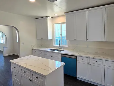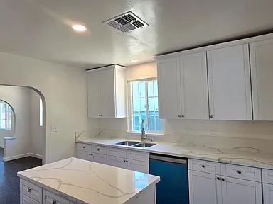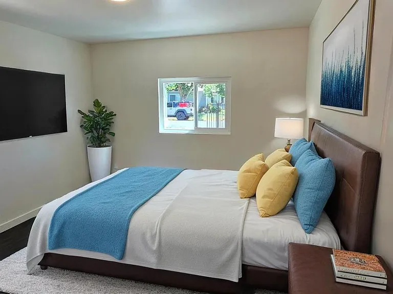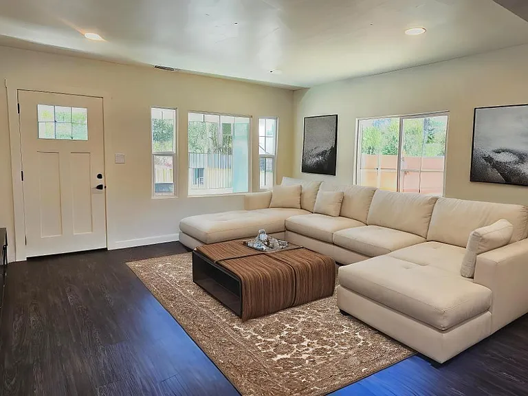NEW, NEW, NEW! This Super Cute Bungalow has been Recently Updated and enjoys a great location minutes from freeways and shopping As you walk up to it you will see the all new Roof, Windows and beautiful Stucco finish. Once entering you will see new luxury Vinyl Plank floors throughout and all new lighting fixtures. The kitchen features plenty of storage in the all new cabinets, beautiful quartz counter tops, kitchen island, sink, faucet, Gas Range, Micro Hood, Dishwasher and Garbage disposal. The laundry room has gas and electric hook ups, stand alone utility sink and a built in Ironing Board. The Tankless water heater supplies unending hot water for the new Multiple head showers in both the master and guest baths. You will also find all new plumbing and electrical fixtures as well as vanities in the well appointed bathrooms. You will find a rare feature for this era of home a good sized master suite with extra large closet and ensuite master bath. The large lot affords plenty of opportunity with room for multiple ADU,s. There is RV storage on the left side of the home with gravel parking for RV parking with a 30 Amp plug. On the right side is a concrete driveway to the extra deep garage with room for a workshop. Your next new home is here and ready for you to move into
