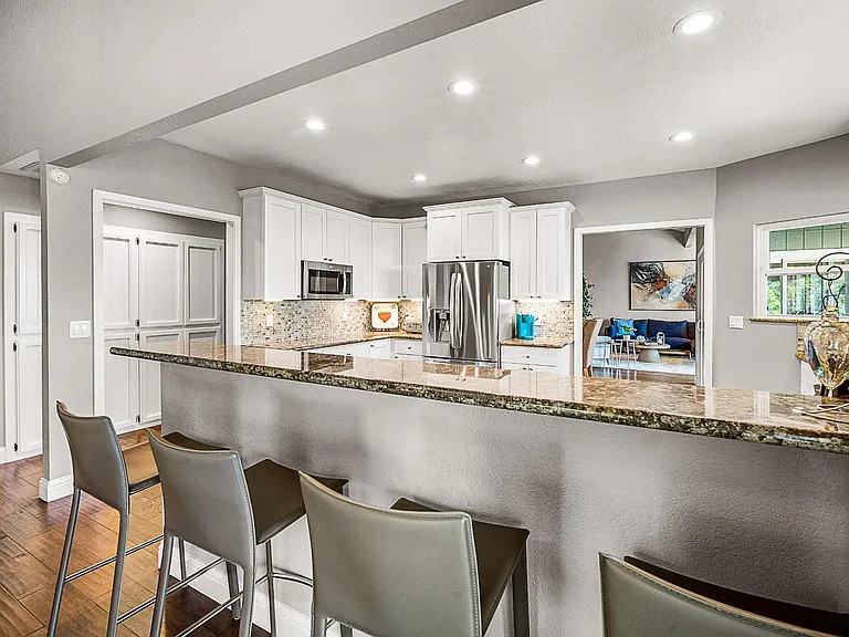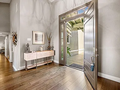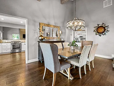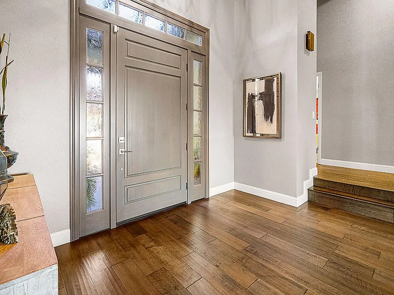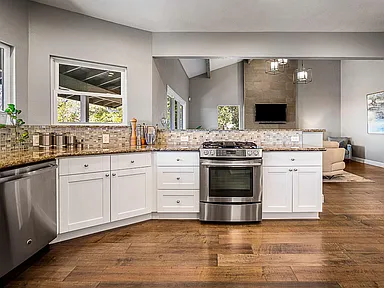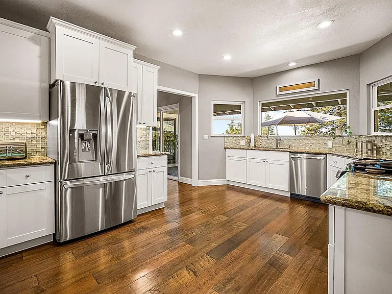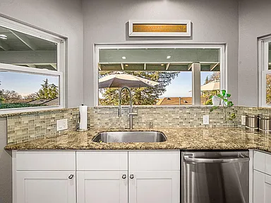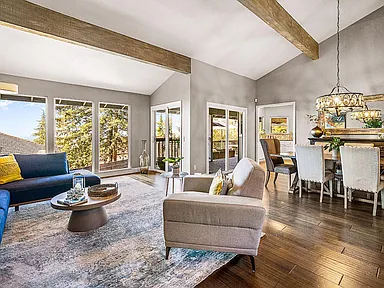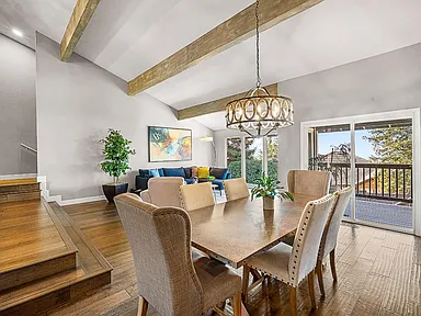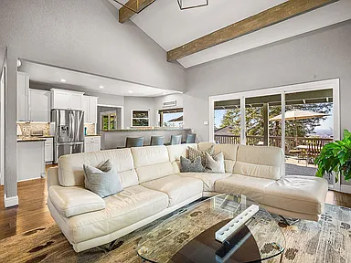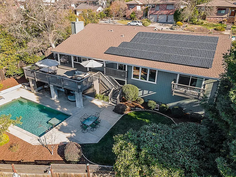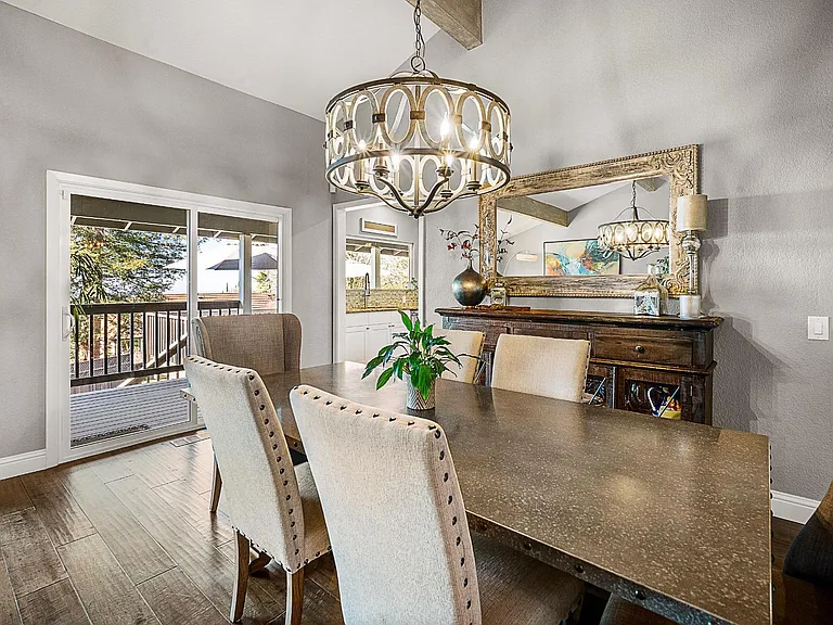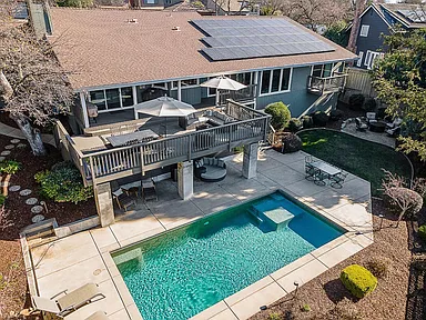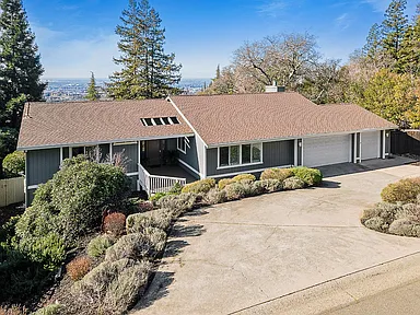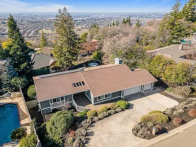 Breathtaking panoramic Sacramento city and valley views from this beautiful newly renovated contemporary inspired SINGLE STORY custom estate positioned perfectly on a private parcel in highly sought after Ridgeview neighborhood in prestigious El Dorado Hills. Enter through the front door of this spacious home with hand scraped wood flooring into the sunken formal living and dining rooms with beam ceilings,large windows and sliding doors overlooking rear yard and views. Upgrades include designer lighting, furniture grade cabinetry, high end plumbing, custom lighting and tile accents. Modern chef's kitchen with expansive granite counters, stainless appliances, butler's pantry and overlooking family room with floor to ceiling gas fireplace and beam ceiling treatments. The sunken primary suite includes a cozy sitting area with beam ceilings and access to private view balcony. Additional three guest bedrooms, two and one half baths and spacious laundry room. Sparkling pool with expansive patios, grassy areas and SOLAR complete this rare offering. Sought after Buckeye/Oak Ridge Schools.