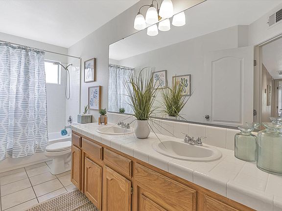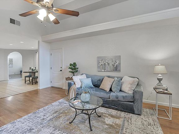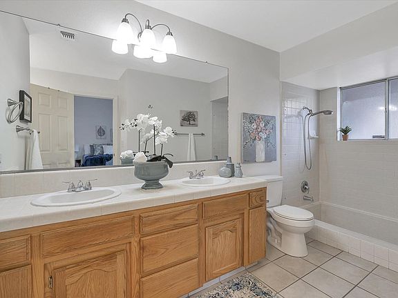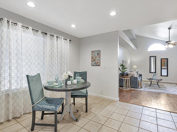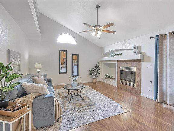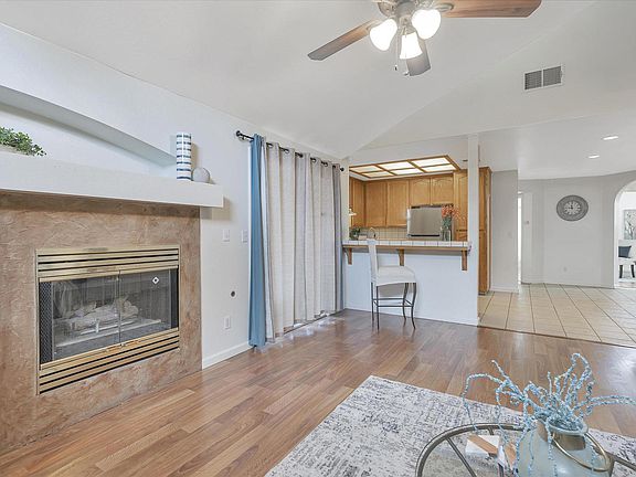 Don't miss out on the opportunity to call this charming home your own! Stucco Exterior, Tile Roof, One Story. Open flowing floorplan with separate living/family rooms. Spacious kitchen with breakfast nook and stools around the counters to make the kitchen a fantastic place to gather. Family room has high vaulted ceilings, shelfs with up-lighting and cozy fireplace to unwind at the end of your day. Primary bedroom has dual closets and access to the outside to a covered patio. Dual sinks in Bathroom, Oversized Vanity area. Bathrooms are tiled, clean and in good shape and ready to accessorize and put your own touch on it as you go. Large private lot, with plenty of space to build out and add all your outdoor upgrades. Built in free flowing pool with plenty of space around to add you gazebo, outdoor kitchen. Quiet location at the end of a cul-de-sac and close proximity to the Marketplace at El Paseo with tons of shopping and dining options!